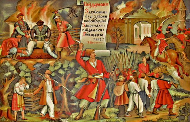 на бік повсталих і розпочав наступ 9(20).6.1768 на Умань. Після здобуття 10.6. Умані повстанські загони розташувались табором поблизу міста. Рада повстанців обрала М.Залізняка гетьманом і князем